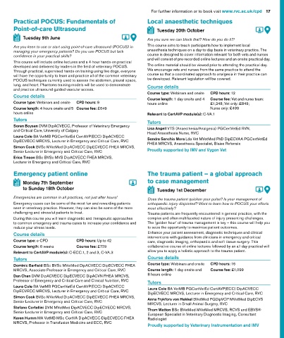 16 Emergency care and anaesthesia For further information or to book visit www.rvc.ac.uk/cpd 17
