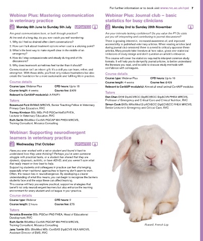6 Professional skills for the veterinary team For further information or to book visit www.rvc.ac.uk/cpd 7